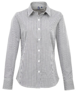 PremierWomen’s Microcheck (Gingham) long sleeve cotton shirt