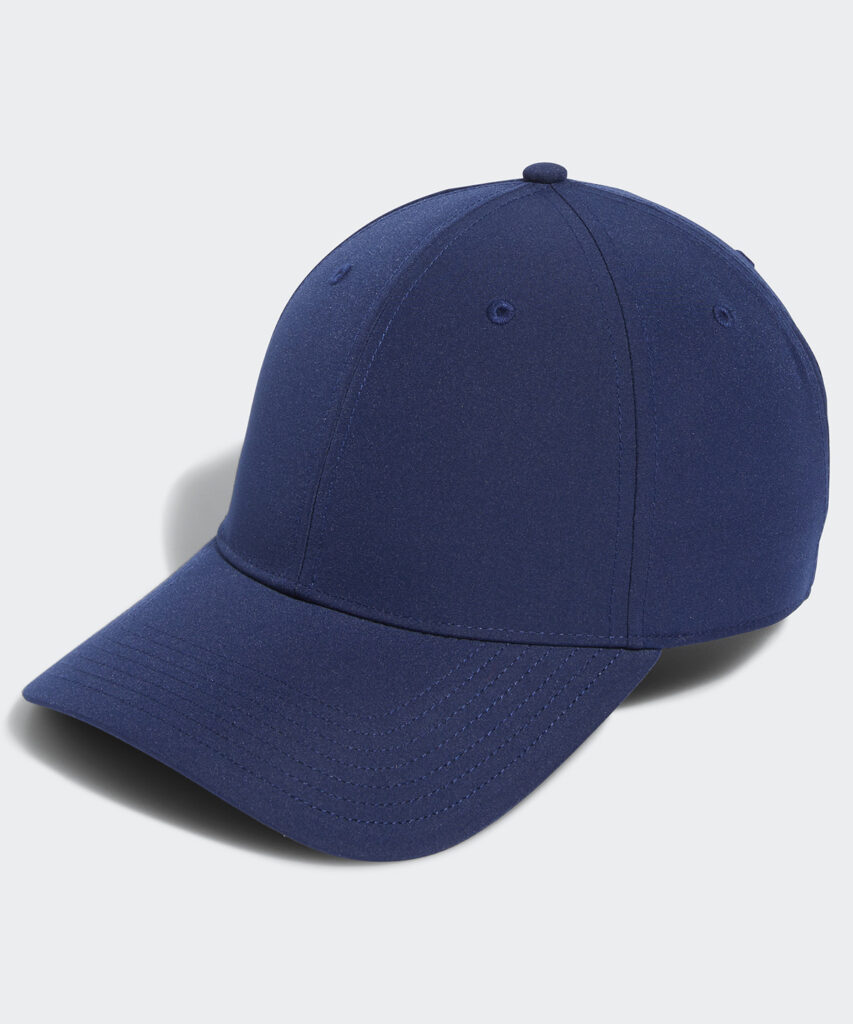 Pre-curved brim stretchy hook and loop adjustable back strap. Six-panel construction made with 100% recycled polyester weave.
