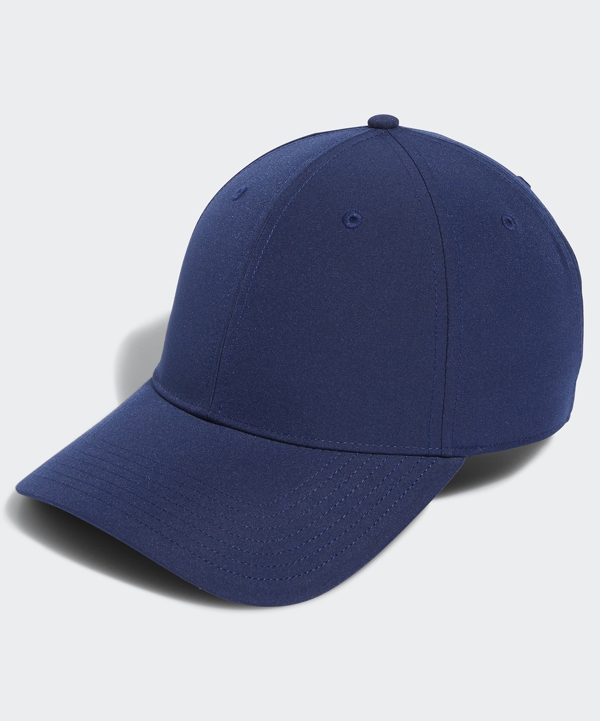 Pre-curved brim stretchy hook and loop adjustable back strap. Six-panel construction made with 100% recycled polyester weave.
