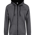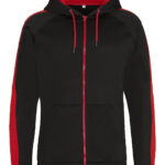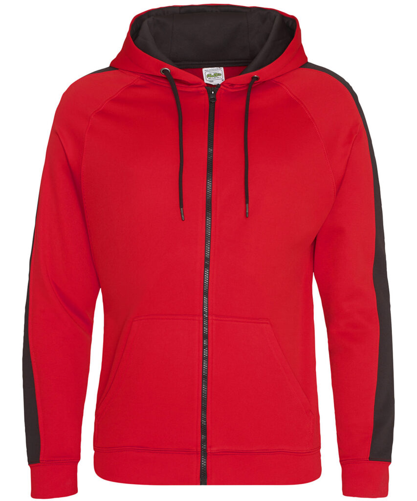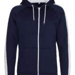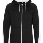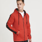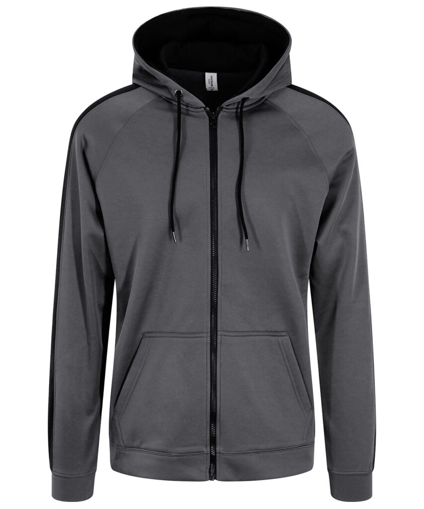 Sporty fit, full-zip hoodie. Twin-needle stitching detail. Contrast drawcords. Three panel double fabric hood with contrast inner. Raglan sleeve with contrast stripe. Split kangaroo pouch pocket. full-zip Simple tear-out label makes it perfect for rebranding. Brushed inner fleece. Vegan certified. BSCI certified. Oeko-Tex certified. SEDEX certified. WRAP certified.