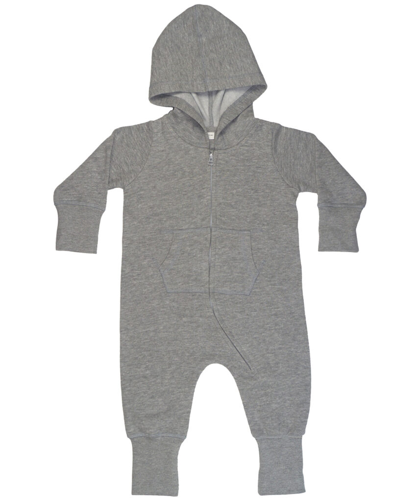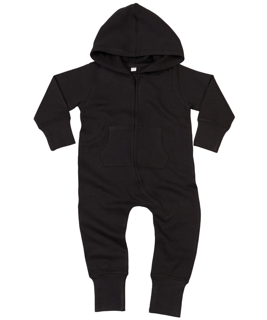 Baby and toddler All-in-one with cosy and soft brushed inner, and both 3 piece hood and extra-long cuffs (which can be folded back or left longer) for optimum fit. No centre back seam for increased decoration potential. Comfort tabs at top of zip. Oeko-tex class 1 approved fabric. ?Well-made? ethical manufacturing process. Brand-free back-neck area with tear off size and style label only. Oeko-Tex certified.