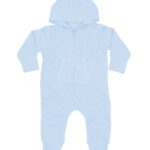Soft and cosy baby all-in-one with brushed inside and 3/4 length zip for ease of dressing. Extra long cuffs can be worn folded down or back as baby grows. Seam free back for optimal decoration potential.