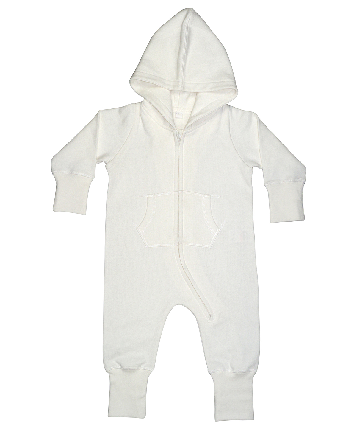 Baby and toddler All-in-one with cosy and soft brushed inner, and both 3 piece hood and extra-long cuffs (which can be folded back or left longer) for optimum fit. No centre back seam for increased decoration potential. Comfort tabs at top of zip. Oeko-tex class 1 approved fabric. ?Well-made? ethical manufacturing process. Brand-free back-neck area with tear off size and style label only. Oeko-Tex certified.