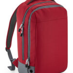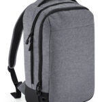 Water-resistant fabric. Wide zip opening for easy access. Front pocket organiser section. Internal slip pocket. External bottle pocket. Secure wireless headphone holder. Easy-access attachment clip. Metal ventilation eyelets. Breathable padded mesh back panel. Ergonomically designed straps for everyday comfort. Padded grab handle. TearAway label for ease of rebranding. BSCI certified. Reach certified.