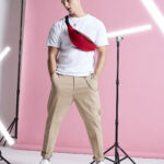 Adjustable webbing belt with secure clip fastener, large zippered main pocket, zippered rear pocket. Reach certified.