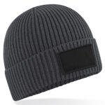Contains at least 50% recycled polyester. Recycled polyester made from 100% rPET, equivalent to approx. 1.5 post-consumer bottles. Ribbed knit. Single-layer knit. Engineered crown for maximum comfort. Cotton twill patch for decoration. Cuffed design for optimal decoration. TearAway label for easy rebranding.