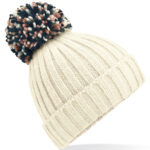 Heavyweight ribbed knit design. Luxury oversized pom pom. Luxurious Shearling lining for extra warmth. Cuffed design for optimal decoration. TearAway label for ease of rebranding. BSCI certified. Reach certified.
