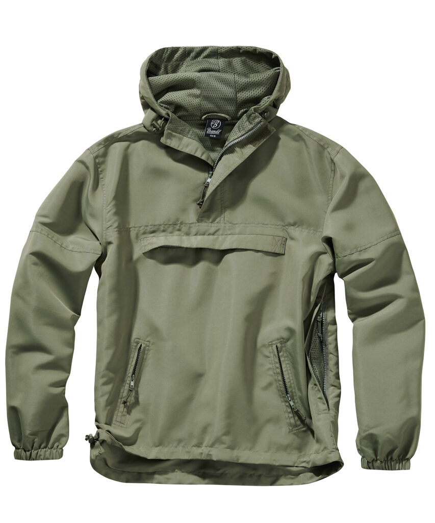 Function meets casual street wear style. The outer material is durable as well as wind and water-repellent. Inside a mesh lining provides additional comfort. Further practical details include; hood with drawstring, lateral ventilation hole and cuffs. Sufficient space for your belongings provided by a large chest pocket with zipper and 2 lateral pockets with zippers. This Brandit jacket is your ideal partner for showery days.