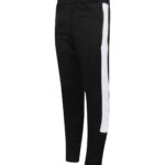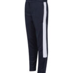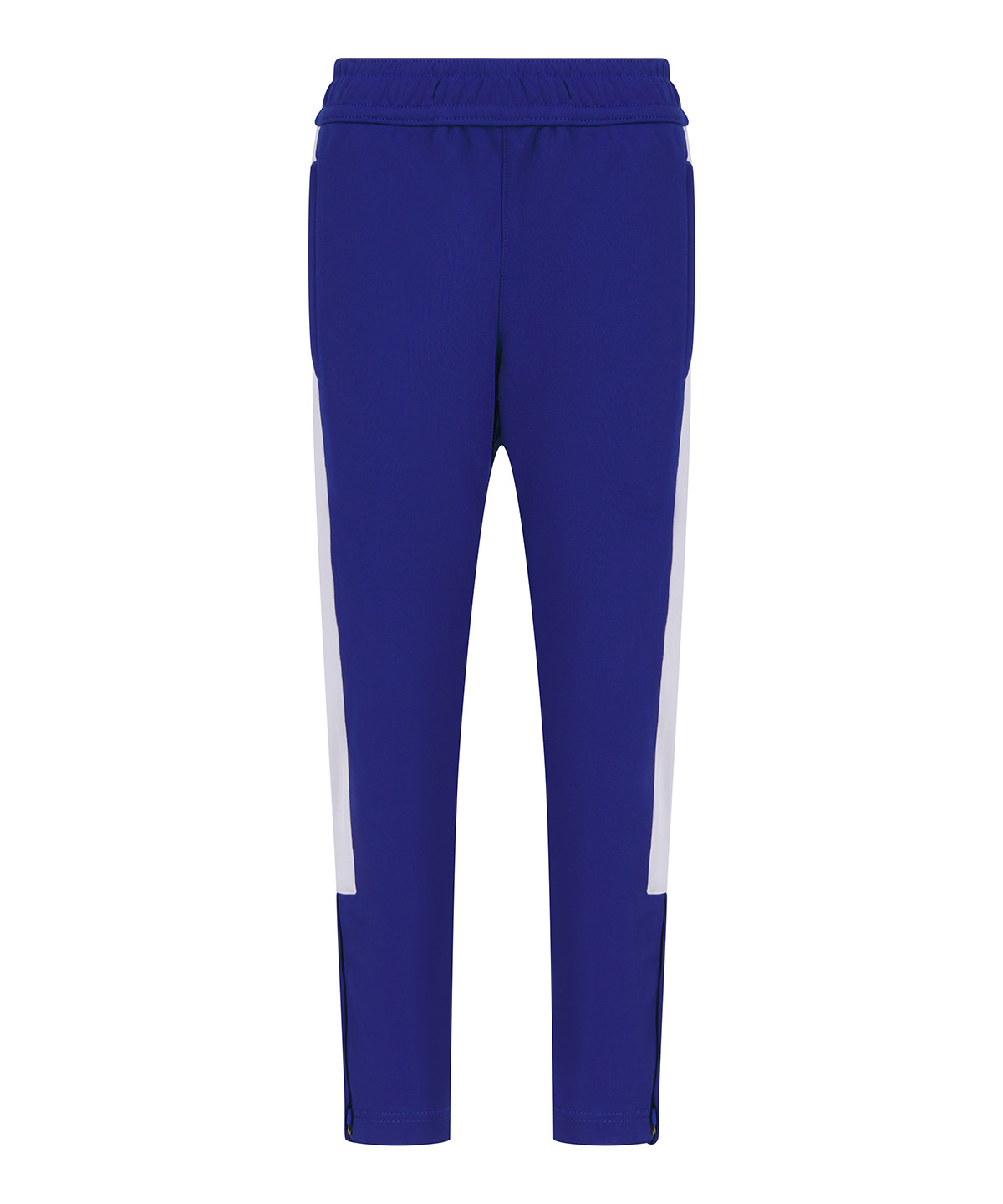 Slim leg knitted track pants with contrast colour side panels. Zipped side pockets. Elasticated waist. Ankle zips with zip guard and semi-automatic lock zip sliders. BSCI certified.