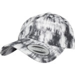 Low-profile tie-dye cap. Subtle black-and-white batik wash. Casual dad cap shape. Genuine leather strap with metal buckle. BSCI certified. WRAP certified.