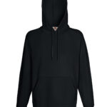 Lightweight unbrushed fleece. Raglan sleeves. Hood with self-coloured flat draw cord. Front pouch pocket. Waist and cuff in cotton/Lycra rib. WRAP certified.