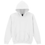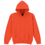 Air jet yarn which has a softer feel and reduced pilling. Double-lined hood. Tearaway label. Twin-needle stitching at shoulder armhole, neck and waistband. Pouch pocket. Set-in-sleeves. 1×1 rib with elastane. Quarter-turned body to eliminate centre crease. No drawstring to conform to EU regulations.