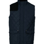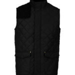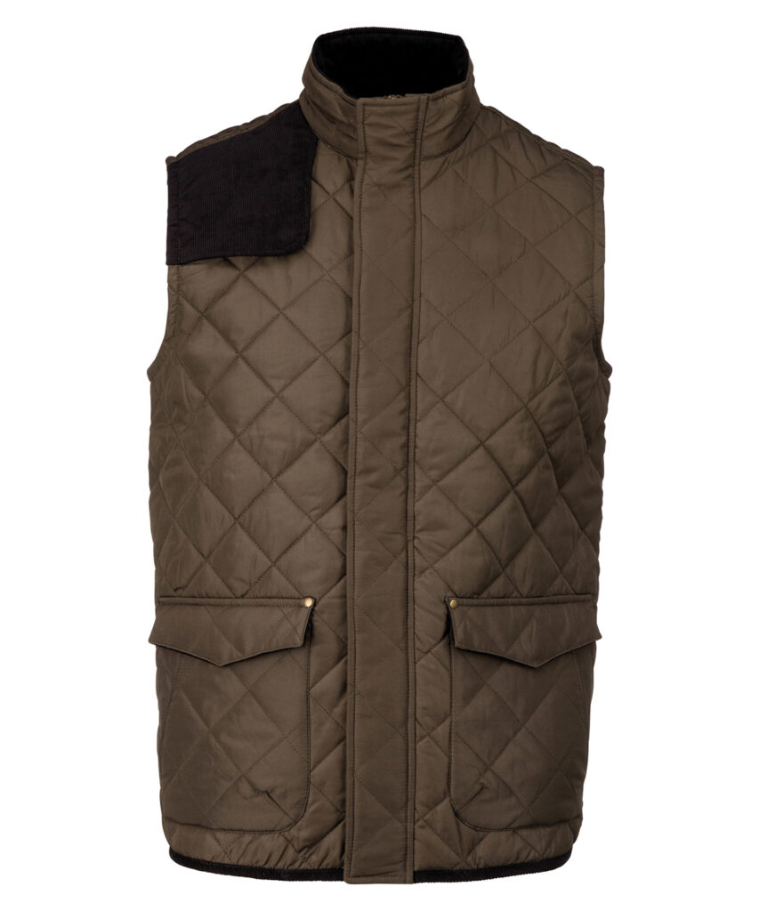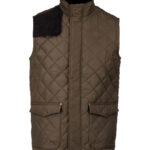 Zip fastening concealed beneath press stud placket. 2 double front pockets with press stud flaps. 1 inner pocket. Press stud shoulder yoke. Corduroy trim on hem, inside neck and reverse side of pocket flap. 2 slits with press studs at back.