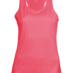 100% Polyester. Quick drying Lightweight fabric. Racer back style. Bound neck and armholes. Twin needle finishing. BSCI certified. Oeko-Tex certified.