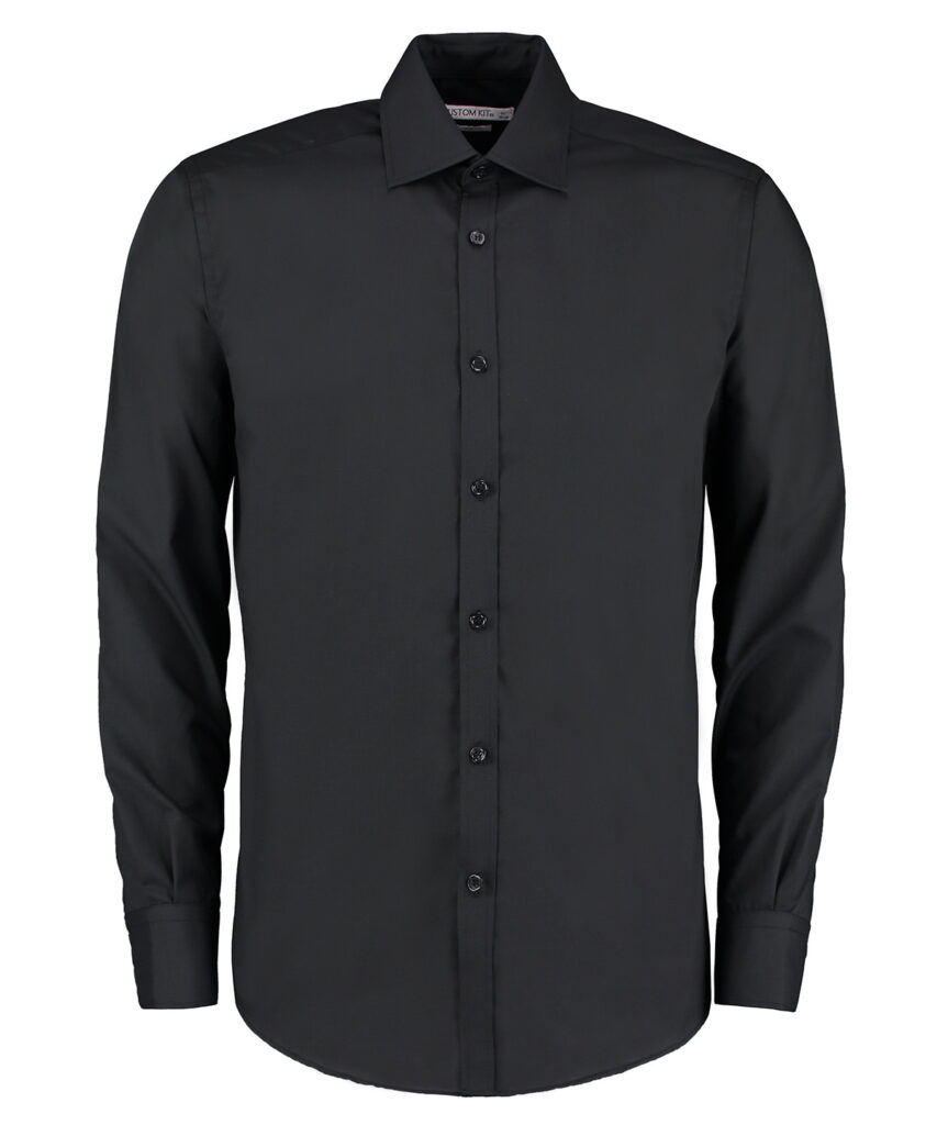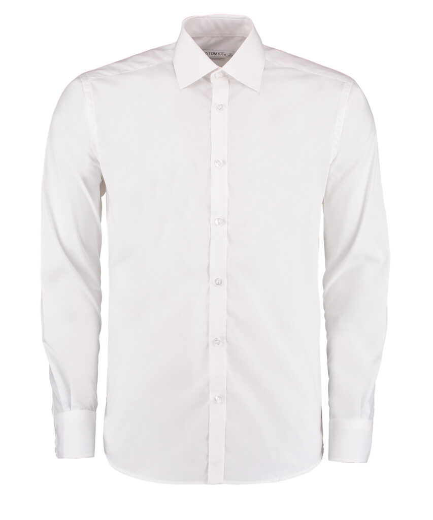 Easy care fabric. Fused stand-up semi cutaway collar. Rounded hem. Back yoke. Two-button cuff with buttoned point cuff placket. Two darts at back. Single needle stitching around armholes. Double-stitched sleeve and side seams. Spare button. Kustom Kit woven back neck label. SEDEX certified. Oeko-Tex certified.