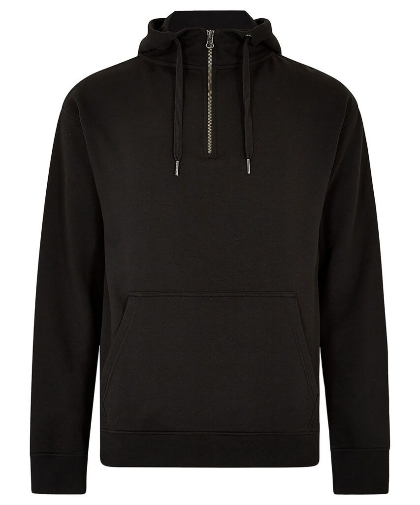 Versatile and retail-ready, this midweight hoodie is made from 280gsm 80% cotton/20% polyester brushed back Jersey with a 100% cotton face. It features a YKK metal 1/4 zip and industrial metal hardware, and sits perfectly in both fashion and workwear environments. Key benefits include: a generous Jersey-lined hood; twin-needle stitched armholes; a classic kangaroo pocket applied with double-stitched seams for extra durability; full-needle cuffs and welt for shape retention, with twin-needle top stitching.