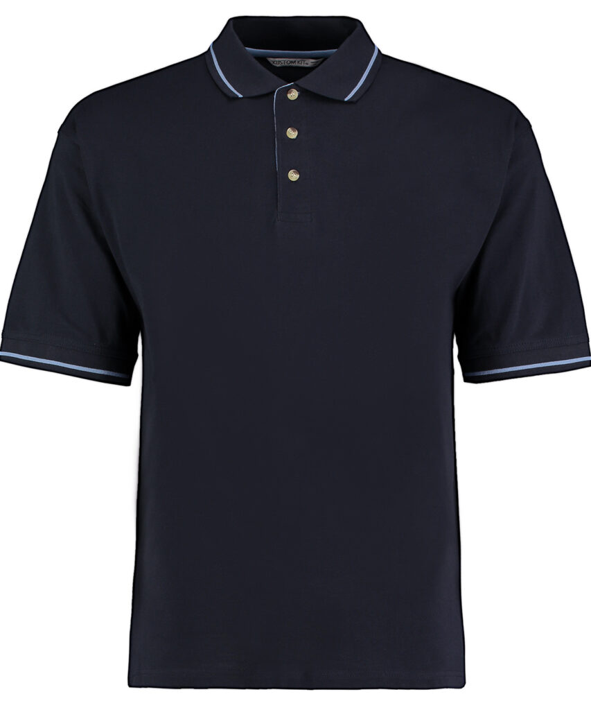 Contrast stripe 1×1 rib flat knit collar and cuffs. Contrast three-button slanted top placket. Contrast back neck tape. Half moon yoke on back. Taped shoulder seams. Contrast herringbone taped side vents. Double-stitched shoulders, armholes and cuffs. Twin-needle hem. Spare button. Kustom Kit woven back neck label.Please note this garment is a generous fit. WRAP certified. SEDEX certified. Oeko-Tex certified. BSCI certified.