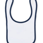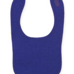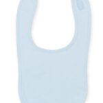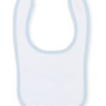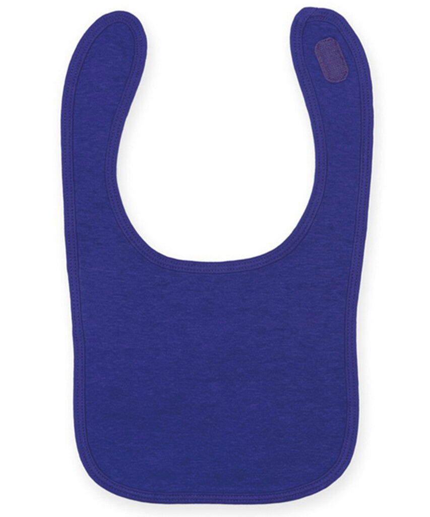 Children’s bib with double fabric and binding detail around edge and hook and loop fastening fastening at back neck. SEDEX certified. Oeko-Tex certified. BSCI certified.