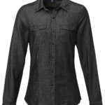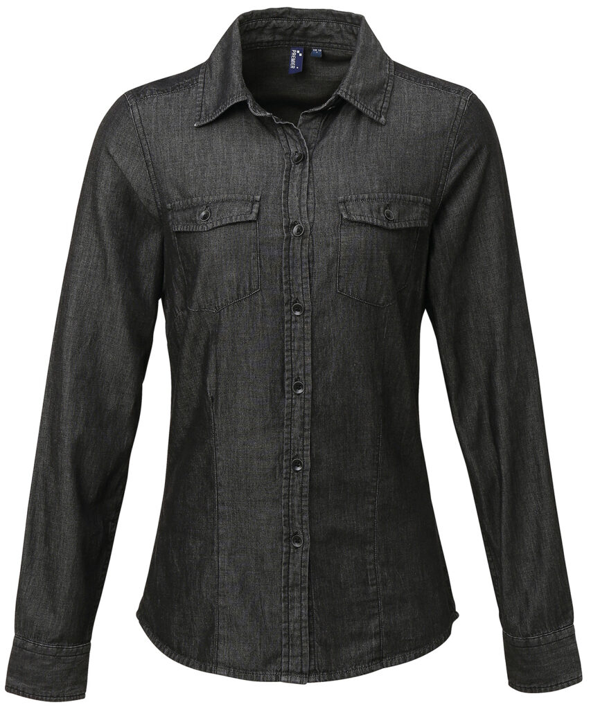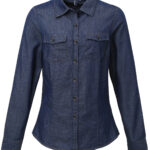 Long sleeve denim shirt with contrast stitch detail with two chest pockets. Buttoned cuff and sleeve guard. Curved hem. Back yoke. WRAP certified. BSCI certified. Reach certified. SEDEX certified.