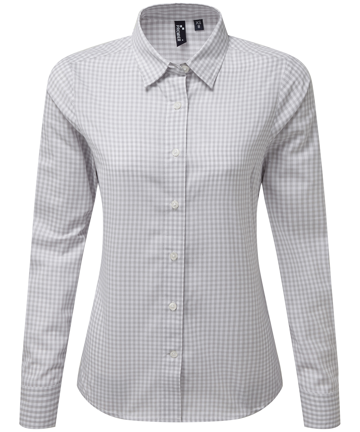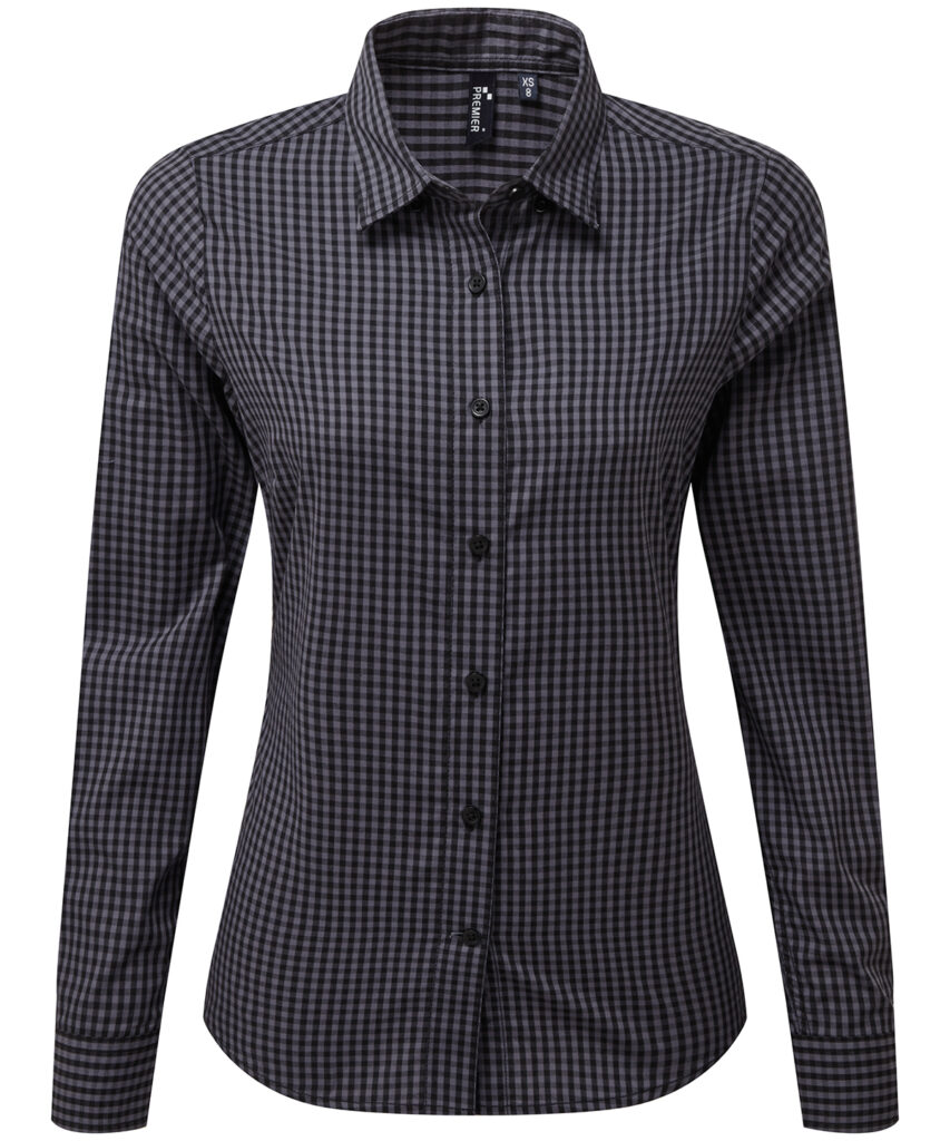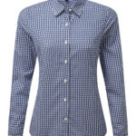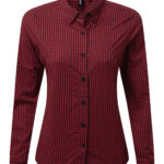 An attractive long sleeve gingham patterned shirt in strong contrast colours. Featuring a single buttoned cuff and sleeve guard. Styled with a narrow soft collar with button down options on the underside. An easycare and durable women’s chequered shirt that gives a charming, vintage-chic approach to front-of-house service.