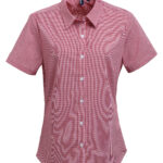 A welcome addition to the existing range of ladies short sleeve blouses from Premier, this style reflects the latest corporate styles worn on the office floor. The Gingham print along with soft collar styling offers a more casual approach to workwear but the buttoned collar ensures that this remains a smart choice for business professionals. Made with 100% cotton for a soft and comfortable blouse that is available in four popular colourways.