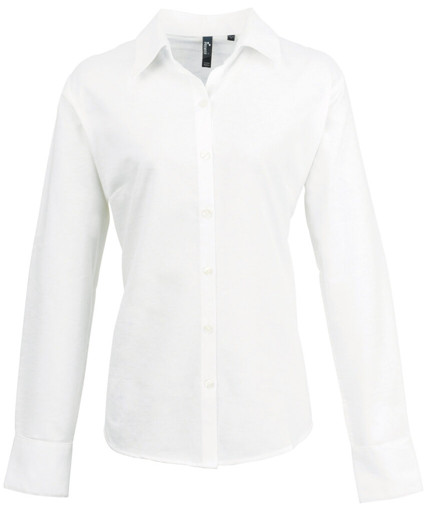 Premier’s long sleeve Signature Oxford blouse comes in a cotton rich Oxford weave fabric for a smart and professional appearance. This blouse offers a more fitted styling for the wearer with bust and back darts, a rounded bottom hem and soft collar detail on the neckline making for a lovely everyday work blouse.