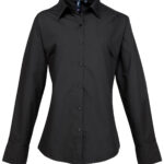 Premiers long sleeved Supreme Poplin Blouse offers a flattering feminine fit with soft collar detail with bust and back darts giving this blouse a semi fitted appearance. The long sleeves are fastened neatly with a double button cuff. Offering a heavier weight material for durability and finished with a rounded hem.