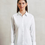 Ladies easy-care long sleeve blouse with improved wear and appearance. Supreme poplin. Soft collar styling. Rounded bottom hem. Fitted styling with bust and back darts. Double buttons on cuff. Made from OEKO-TEX Standard 100 fabric. WRAP certified. BSCI certified. Reach certified. SEDEX certified.