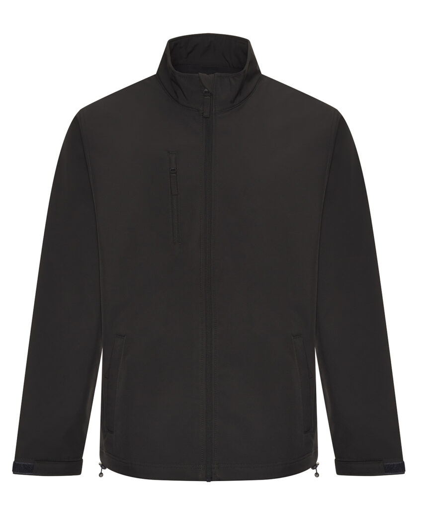 Standard fit. Full-zip front. Zipped chest and side pockets. Printable three-layer binded softshell fabric. Chinguard. Internal storm flap. Adjustable shock cord hem. Windproof and showerproof. SMETA and amfori BSCI certified.