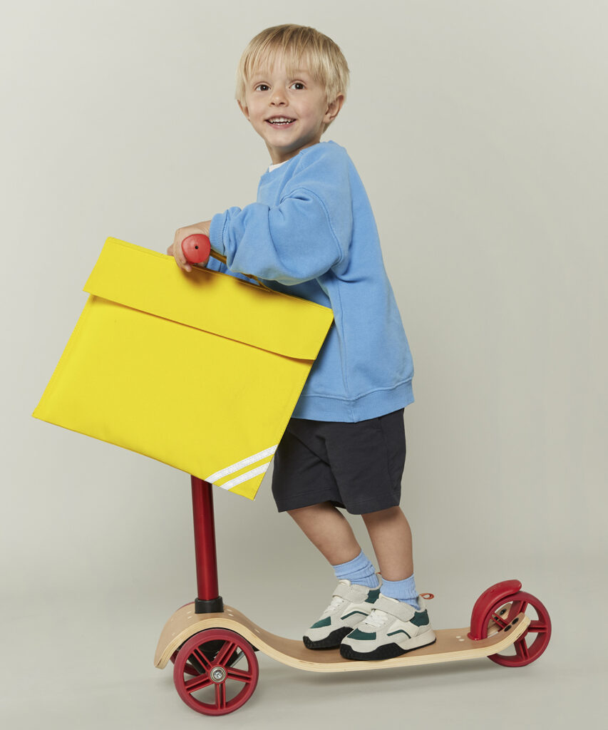 Enchanced-viz reflective stripes, name card holder. Rip-Strip closure. Padded handle. BSCI certified. Reach certified.