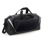 Front pocket designed for easy decoration. Large main compartment. Two large end pockets. Internal valuables pocket. Internal mesh pockets. Water bottle holder. Detachable adjustable shoulder strap with pad. Padded hand grip. Internal baseboard. Protective base feet. Reach certified.