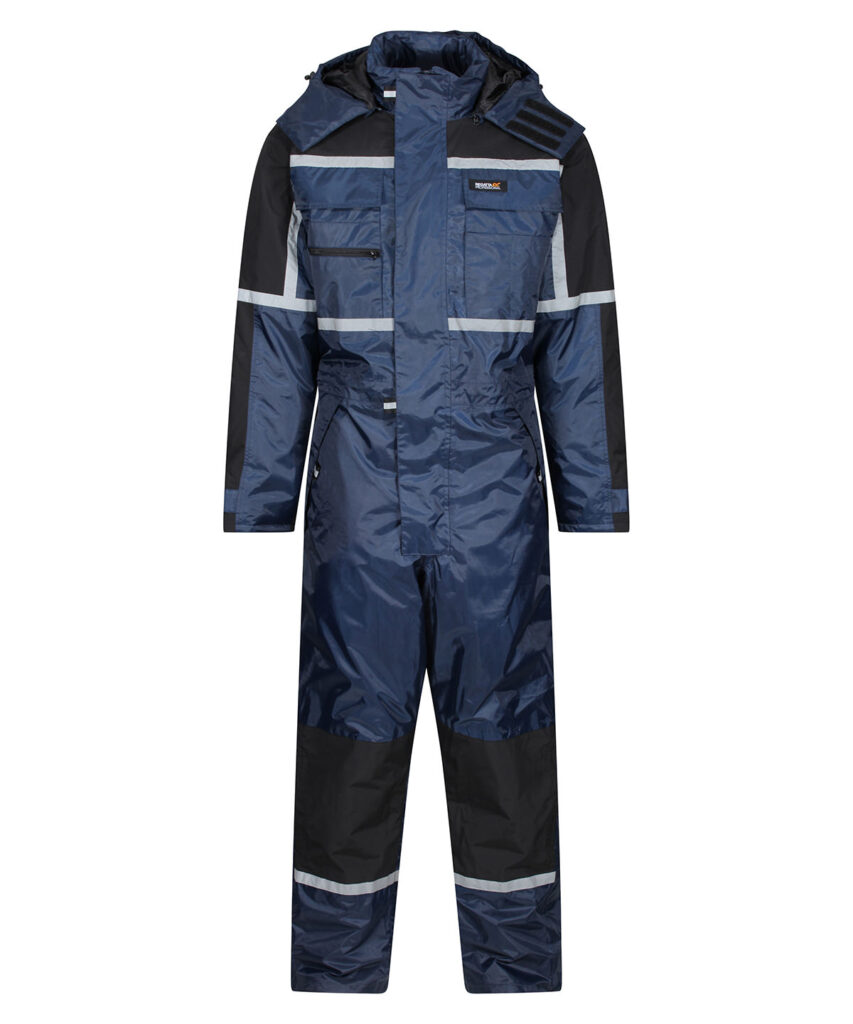 The Pro waterproof insulated coverall from Regatta Professional. Waterproof, durable and insulated, this is perfect for getting the job done in adverse weather. It features waterproof Hydrafort 5000 fabric to protect against rain and work splashes, and comes with Thermoguard insulation, too, to keep you toasty in cold weather. Ideal for farm and field work and other manual tasks. Durable ripstop panels provide lasting wear, and a centre zip and full-length side zips make this an easy-wearing piece.