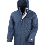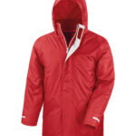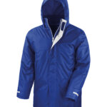 Waterproof-StormDri 2000. Windproof. Fully taped waterproof seams. Long fit. Super warm. Concealed 3-panel hood in collar. Full front heavy duty zip. 2 concealed front pockets with storm cover. Super warm fleece-lined collar. Reflective cuff and back detail. Name and class tag inside left pocket. Fleece-lined front pockets. Adjustable drawcord hem. Ready to brand cut away label. Oeko-Tex certified. Decorating methods: Embroidery, direct print, digital transfer print and screen print transfer. Decorators access point: Full hem and left chest.