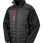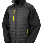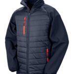 On-trend padded plus softshell combination. Supersoft, lightweight and warm. Printable softshell sleeves. Ready to brand. Quiet to wear. Contrast colour pocket zips. Full front zip with chin guard. Stand-up padded collar. Padded body. Soft bound cuff. Black zip pulls. Contains recycled polyester.