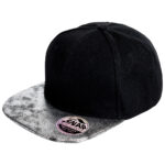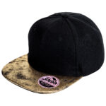 Tear away label. CORE value product. 6 panel. Stitched eyelets. Stiffened front panels. Snapback adjuster. Contrast PU pearl fabric flat peak.