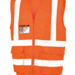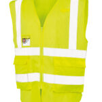 Lightweight mesh safety vest with 50mm sewn on reflective body bands. Self-coloured bound edges. Tear release patch pockets. ID pass pocket. Zipped closure. Radio loop. EN ISO 20471:2013 Class 2 .