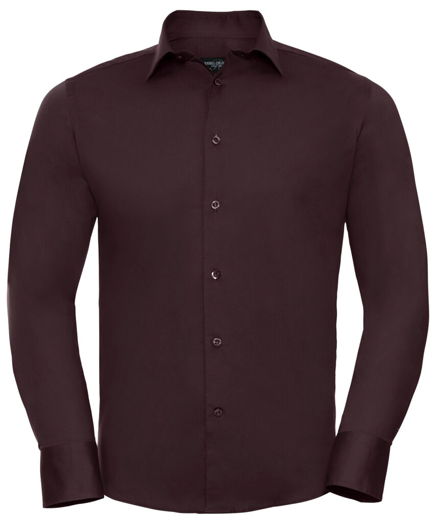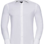 Fitted cut and contemporary design make this style the right choice wherever a modern appearance is required. Smooth fabric with a slight stretch for added comfort and fit. Smart, semi cut-away collar with single button. Mitred double button cuff with single button on cuff gauntlet. Rounded hem. WRAP certified.