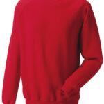 Twin needle coverseams on neck, raglan sleeve, cuffs and waistband for extra durability. Herringbone back neck tape. Spotshield stain resistant coating for fabric protection. fade resistant. BSCI certified.