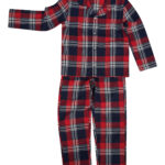 Woven tartan lounge set with plain hem. Shirt with a pyjama collar and pearlised button front, and bottoms with a full elasticated waist. Tear-out label. .
