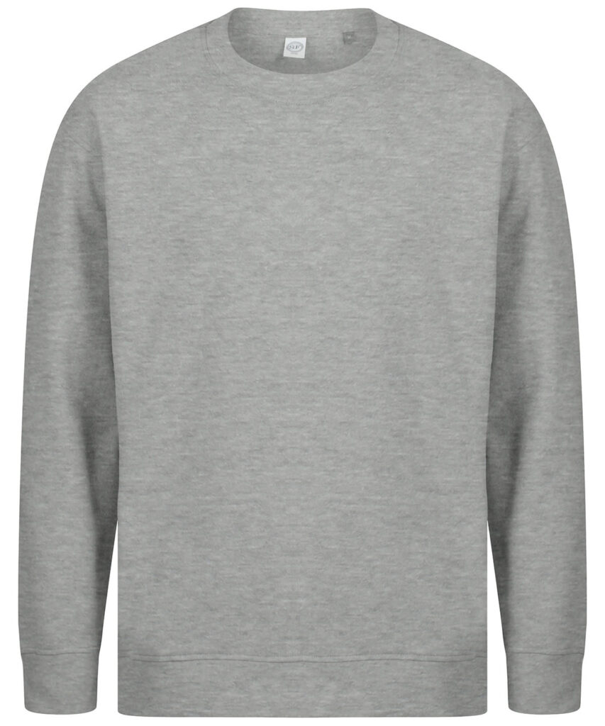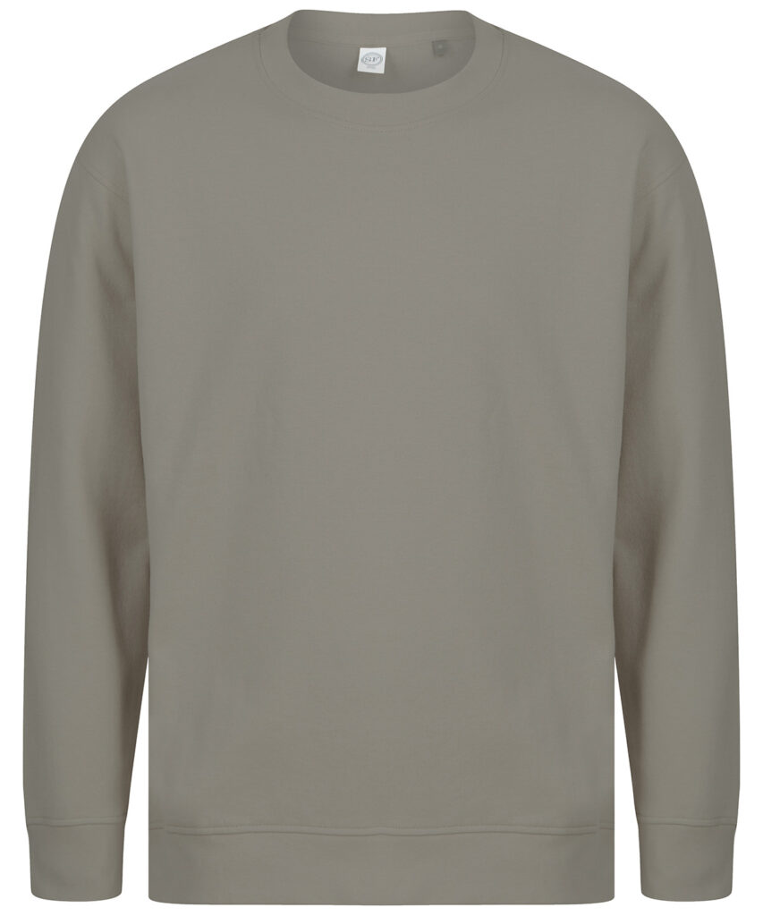 Unisex relaxed-fit sweat. Set-in sleeves, dropped shoulders. Droptail hem curved high front, low back. Ribbed hem cuffs and crew neck. Single Jersey back neck tape and facing. Tonal topstitching detail. Co-ordinates with SF Sustainable fashion range. Brand-free, for easy rebranding. Resealable, recyclable bags; made from 100% recycled plastic. BSCI certified. Oeko-Tex certified. SEDEX certified. Vegan certified.