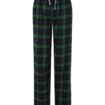 Woven tartan lounge pants with plain hem. Full elasticated waist with contrast mock drawcord. Tear-out label. BSCI certified. Vegan certified.