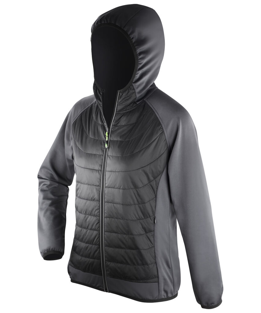Tech info: Showerproof, Breathable. Padded body feature; Anatomically curved on women’s. Super stretch fabric hood and hems. Invisible zip side pockets. Bound cuff, hem and hood. Reflective detail. Thumbhole cuff. Integral hood. Quick dry. Virtually weightless, ideal layer garment. Thumbholes help top stay in place. Articulated sleeves allows full motion. Attractive padded body using faux down. Ventilated performance, lightweight insulation. Super-Stretch fabric and ergonomic seams allow natural movement.