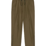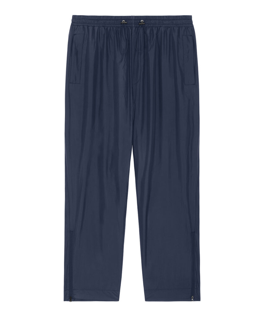 Elastic waistband with adjustable plastic stopper and elastic string. Welt side pockets with reverse zip and extra grosgrain pull. Zip at leg opening.
