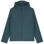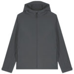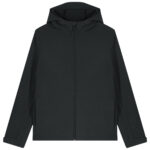 Mens hooded softshell jacket, medium fit, with set-in sleeve and a high collar with panelled hood. Hood opening and bottom hem with adjustable plastic stopper and elastic cord. Reverse nylon zip at centre front. Zipped welt pockets with reflective elastic puller. Bonded three-layer fabric with internal membrane . Fully bonded fleece inside layer. Side panels and stretch for better shape. Adjustable hook and loop sleeve opening. Inside seams finished with recycled binding. Water-repellent up to 10,000mm, breathability up to 3000G/M2/24hrs allowing perspiration to escape. Windproof. Bionic ECO DWR (durable, water-repellent) finish.