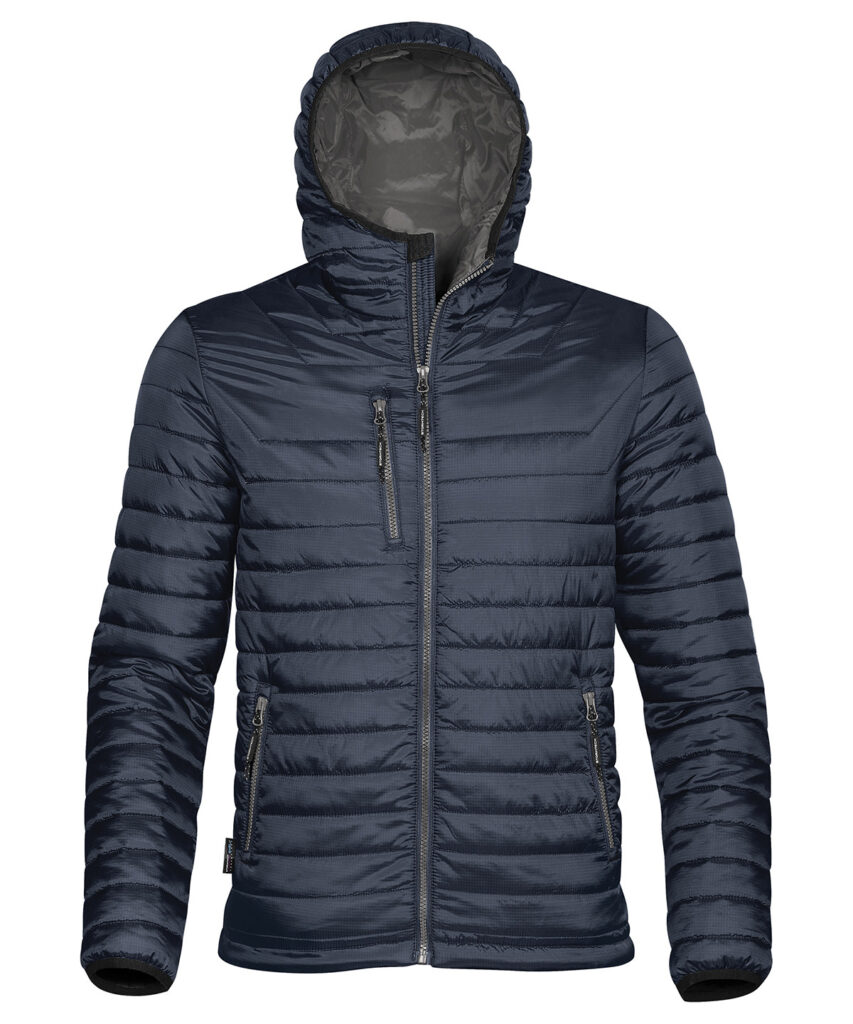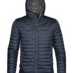 STORMTECH D/W/R durable water-resistant outer shell. Quilted body with ultra soft liner. Centre front vislon zipper with contrast zipper teeth. Elasticized cuffs. Attached hood. Adjustable hem. Set-in sleeves. Brushed tricot hand warmer pockets. Zippered pockets with garages. Chin saver. Internal full-length storm flap. Inside pocket. Internal media port. Embroidery access.