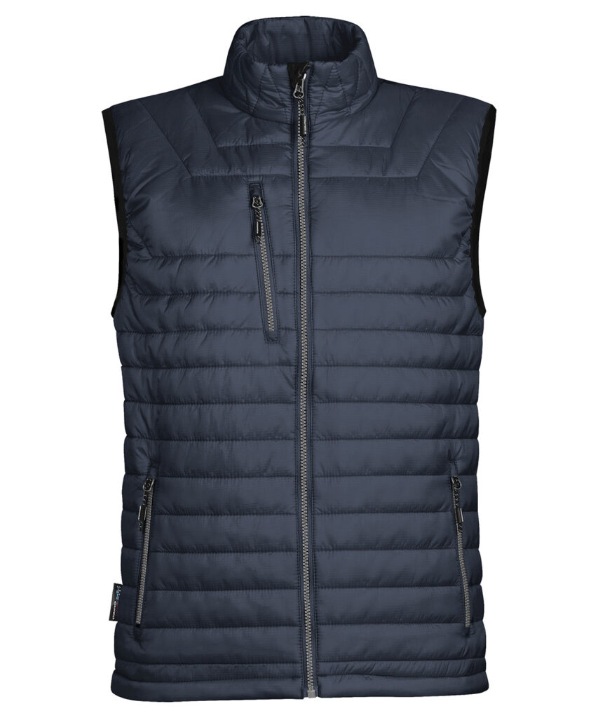 STORMTECH D/W/R durable water-resistant outer shell. Quilted body with ultra soft liner. Centre front vilson zipper with contrast zipper teeth. Quilted collar. Adjustable hem. Brushed tricot hand warmer pockets. Zippered pockets. Chin saver. Internal full-length storm flap. Inside pocket. Embroidery access.