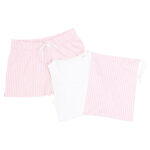 Relax in style with the soft and lightweight pyjama set featuring a white vest with contrast shorts and matching drawcord bag. Available in attractive colourways.