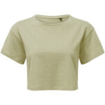 Cropped t-shirt. Short sleeve. Crew neck. Soft-feel. We recommend using block out vinyl and inks.Product contains no branded neck or waist label. Removable Kimble or looped garment tags. Inner seam label holds important product information on one label with a second label containing brand information which can be cut-away.