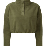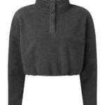 Cropped pull-over fleece with high neck. 1/4 neck popper fastenings to front. Elasticated waistband. We recommend using block out vinyl and inks.Product contains no branded neck or waist label. Removable Kimble or looped garment tags. Inner seam label holds important product information on one label with a second label containing brand information which can be cut-away.