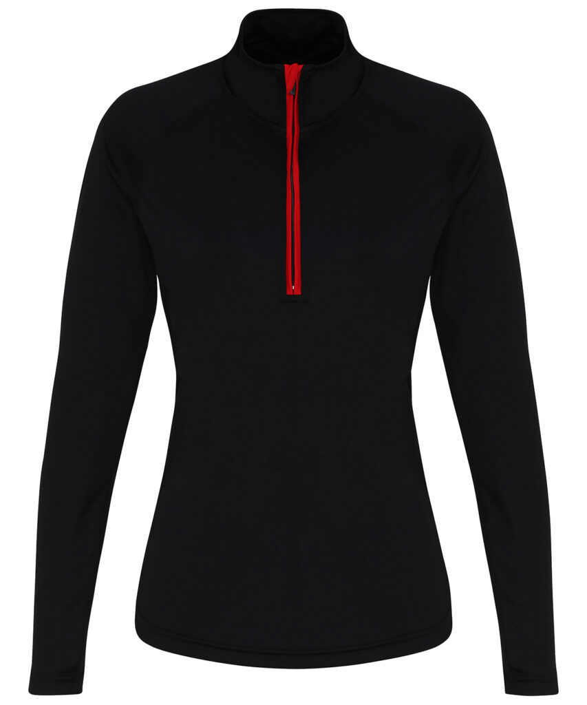 The women’s TriDri performance 1/4 zip is designed with soft, lightweight fabric that is perfect during outdoor workouts for bulk-free warmth.